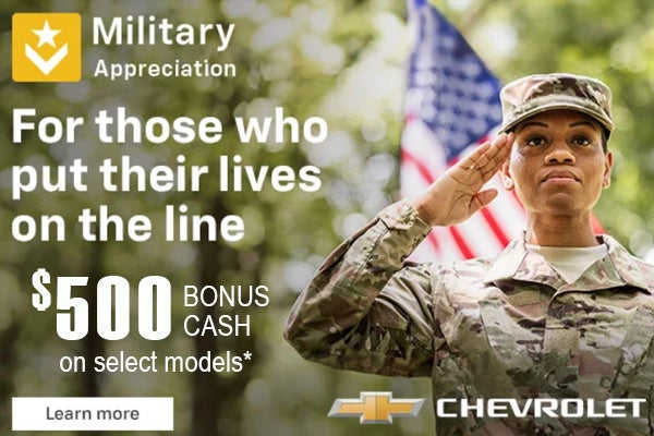 Eligible military personnel includes Active Duty members, Reservists, National Guard members, Veterans and Retirees of the U.S. Army, Navy, Air Force, Marine Corps and Coast Guard. Eligible participants are able to sponsor their spouse. At participating dealers only. Visit gmmilitaryappreciation.com for program eligibility details and for a list of eligible vehicles. Not available with some other offers. Must provide authorization number to participating dealer prior to or at time of vehicle delivery to receive offer. Take new retail delivery by 12/31/26.