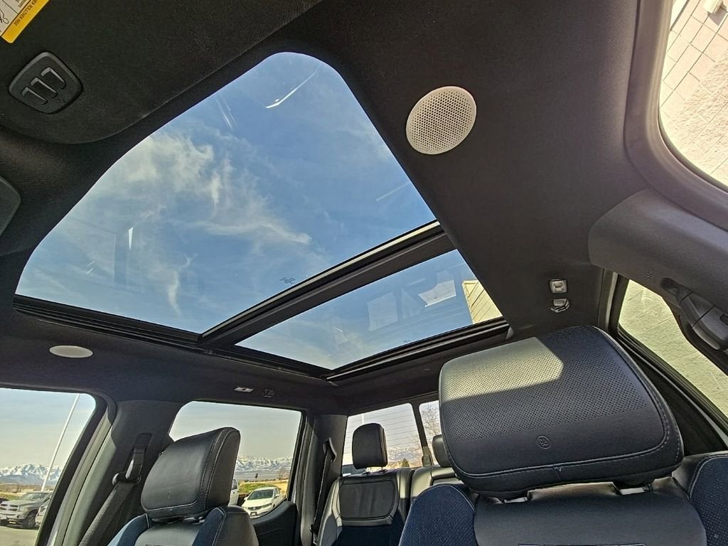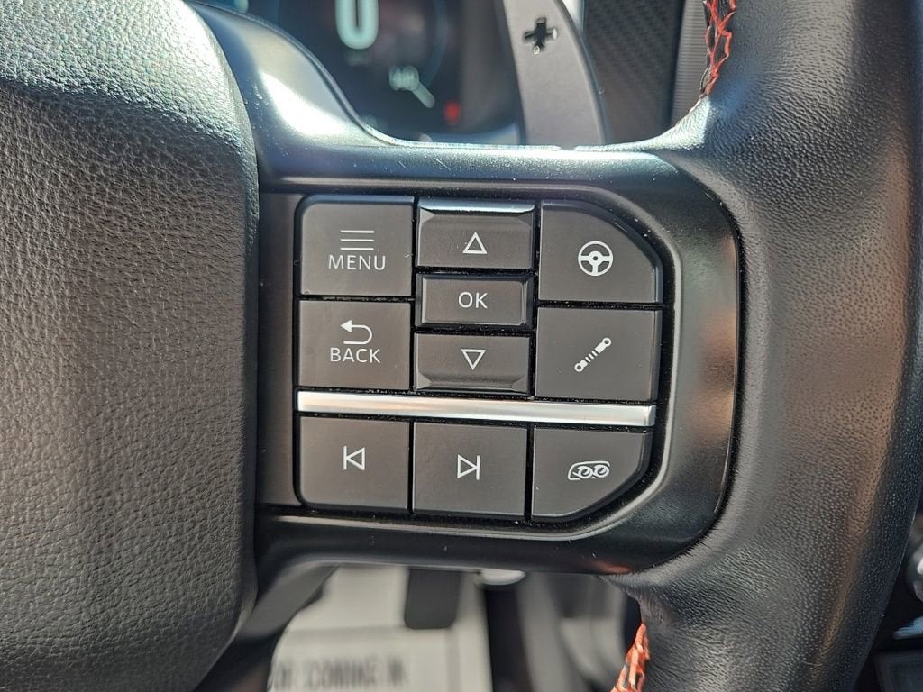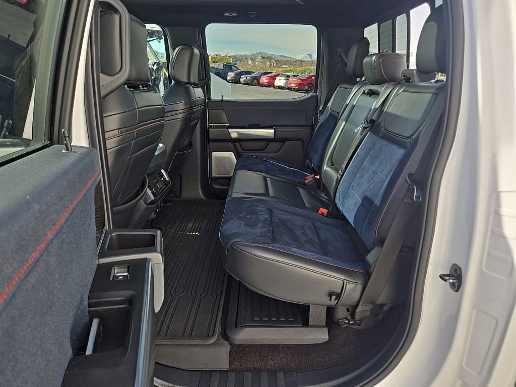 The cabin of this Raptor holds focus on style and convenience, featuring Rhapsody-Blue Recaro heated and ventilated leather-trimmed front seats with Code-Orange stitching, heated steering wheel, heated 2nd row seating, and a twin-panel moonroof for that open-air feel.