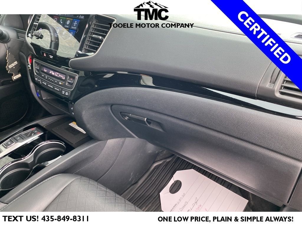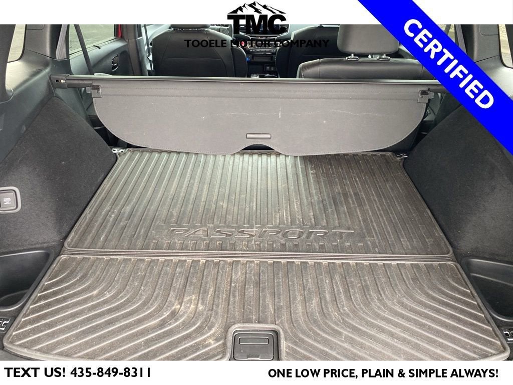Certified. 2023 Honda Passport Elite Priced below KBB Fair Purchase Price! ** NEW TIRES **, A/V remote: CabinControl, ABS brakes, Alloy wheels, Apple CarPlay/Android Auto, Blind Spot Information (BSI) System warning, Front dual zone A/C, Heated front seats, Heated rear seats, Heated steering wheel, Lane departure: Lane Keeping Assist System (LKAS) active, Navigation system: Honda Satellite-Linked Navigation System, Power driver seat, Power Liftgate, Power moonroof, Radio: 540-Watt Premium Audio System w/10 Speakers, Rain sensing wipers, Steering wheel mounted audio controls, Traction control, Ventilated front seats.