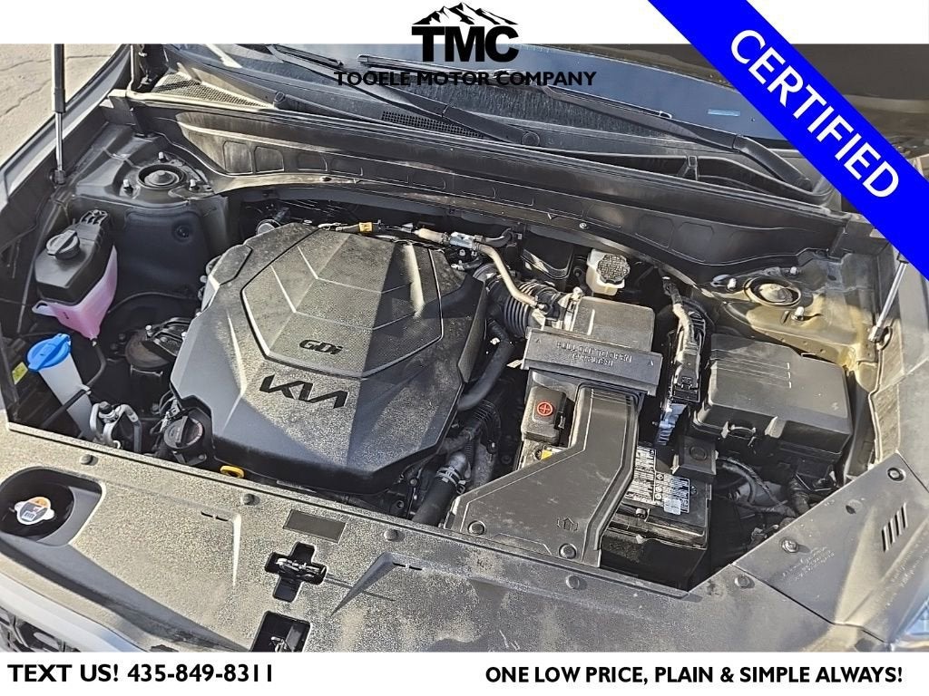 Certified. CARFAX One-Owner. 2023 Kia Telluride SX-Prestige X-Line + Heated Front\Rear Seats & Steering Wheel Ford Blue Advantage: Blue Certified Certified, 10 Speakers, 3.648 Axle Ratio, 3rd row seats: split-bench, 4-Wheel Disc Brakes, ABS brakes, Air Conditioning, Alloy wheels, AM/FM radio: SiriusXM, Apple CarPlay & Android Auto, Auto High-beam Headlights, Auto-dimming Rear-View mirror, Auto-leveling suspension, Automatic temperature control, Brake assist, Bumpers: body-color, Cargo Cover, Carpet Floor Mats, Compass, Delay-off headlights, Driver door bin, Driver vanity mirror, Dual front impact airbags, Dual front side impact airbags, Electronic Stability Control, Emergency communication system: 911 Connect, Exterior Parking Camera Rear, Four wheel independent suspension, Front anti-roll bar, Front Bucket Seats, Front Center Armrest, Front dual zone A/C, Front fog lights, Front reading lights, Fully automatic headlights, Garage door transmitter: HomeLink, harman/kardon® Speakers, Heads-Up Display, Heated & Ventilated Front Bucket Seats, Heated door mirrors, Heated front seats, Heated rear seats, Heated steering wheel, Hybrid Cargo Net, Illuminated entry, Knee airbag, Leather Shift Knob, Leather steering wheel, Low tire pressure warning, Memory seat, Navigation System, Occupant sensing airbag, Outside temperature display, Overhead airbag, Overhead console, Panic alarm, Passenger door bin, Passenger vanity mirror, Power door mirrors, Power driver seat, Power Liftgate, Power moonroof, Power passenger seat, Power steering, Power windows, Premium Nappa Leather Seat Trim, Radio data system, Radio: AM/FM harman/kardon Audio System, Rain sensing wipers, Rear air conditioning, Rear anti-roll bar, Rear audio controls, Rear reading lights, Rear side impact airbag, Rear window defroster, Rear window wiper, Reclining 3rd row seat, Remote keyless entry, Roof rack: rails only, Security system, Smart Key w/ Push Button and Remote Start, Speed control, Speed-sensing steering, Split folding rear seat, Spoiler, Steering wheel mounted audio controls, Tachometer, Telescoping steering wheel, Tilt steering wheel, Traction control, Trip computer, Turn signal indicator mirrors, Variably intermittent wipers, Ventilated front seats, Ventilated rear seats, Wheels: 20 x 7.5 Black Finish X-LINE Exclusive. Clean CARFAX.